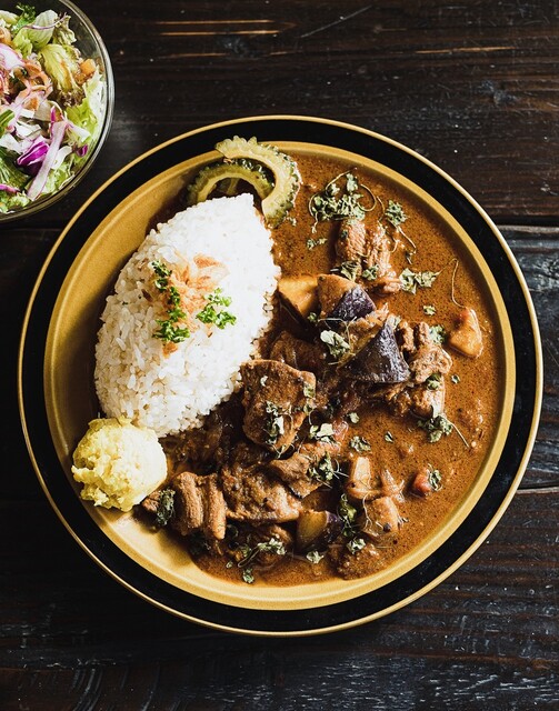 お料理は数十種類のスパイスを使ったスパイスカレーや世界各国の様々な料理からヒントを得た創作料理で世界中の国境を超えた多くの方々と出会い、つながる場所でありたいと思っております。