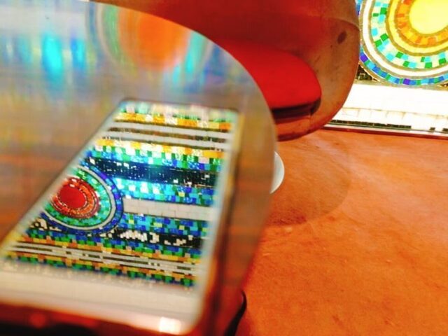 綺麗なステンドグラスがスマホ画面にうまく映りこみました!