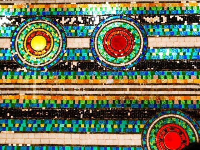 そして、外の円形やブロック状の模様の正体はステンドグラス!