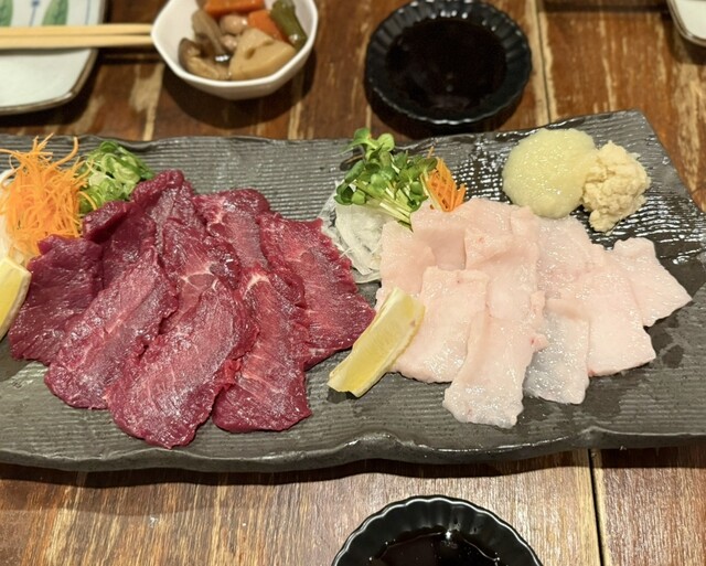 熊本直送新鮮「馬刺し」は、国の安全基準を完全にクリアした安心、安全の馬刺しです。鮮度抜群!この時期限定の自慢の味噌モツ鍋飲み放題コースも充実。 毎日仕入れる鮮魚、旬のお野菜、こだわり日本酒、焼酎、etc. 各種宴会承ります。10名様の掘りごたつ席、18名様からの貸切コースあります。 梅田、茶屋町、中崎町、天六近辺から歩いても近いです。深夜3時まで営業。