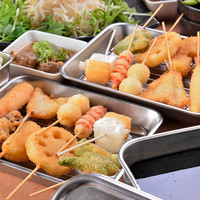 きめ細かいパン粉・薄い衣にこだわった串カツは種類が豊富♪魚介類串をはじめ、大定番の肉串、野菜串、もちやチーズなどの変わり種、デザート串まで多種多様な串かつを、なんと40種類取り揃えています!コースも多数ご用意しております♪ご宴会に是非ご利用ください♪つい立ち寄りたくなる浪花の雰囲気溢れる空間で美味しい本場の串かつをお楽しみください♪