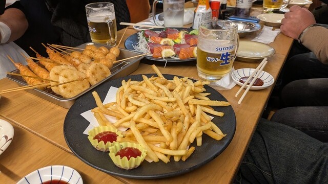 梅田で新年会に参加させてもらいました この日に新年会をしたのはひがし中通り商店街にあるのぶちゃん 東通り店です 店内に入り2階のテーブル席へ 料理はコースで90分飲み放題... 詳細を見る
