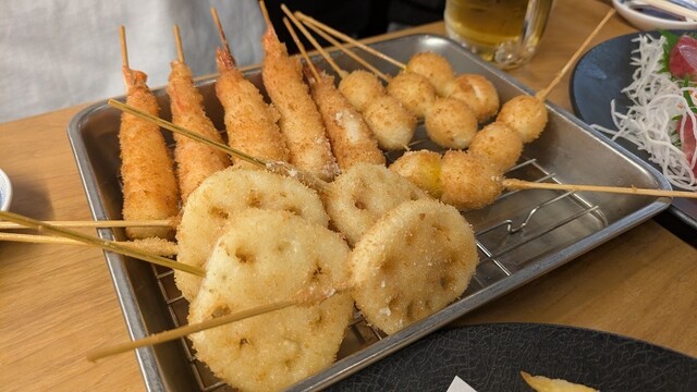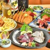 串かつ3本盛りや名物!藁焼き2種、こぼれ寿司を含んだ全8品+120分制飲み放題付きでのぶちゃんを大満足できるコースです♪