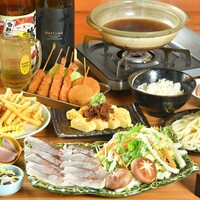 メインの鯛しゃぶをはじめ、揚げ盛り合わせや串かつ3本盛りを含んだ全7品+120分制飲み放題付きで歓送迎会にぴったりのコースです♪
