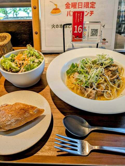 Let'seat!! 週1回の外食ランチ この日は事務所近くの 自然派ワインブラッスリーブーさんへ 金曜日しか提供されない パスタランチを頂きに来ました 本日のパスタはコチラ↓ 結構、ボリューミー サクッ、コロッとしたパンと フレッシュな野菜... 詳細を見る