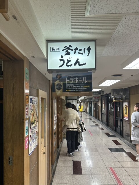大阪駅東側の高架下、約100店舗の居酒屋や洋食店などが集まる昭和レトロな雰囲気の飲食店街・新梅田食道街の『梅田 釜たけうどん』だ。