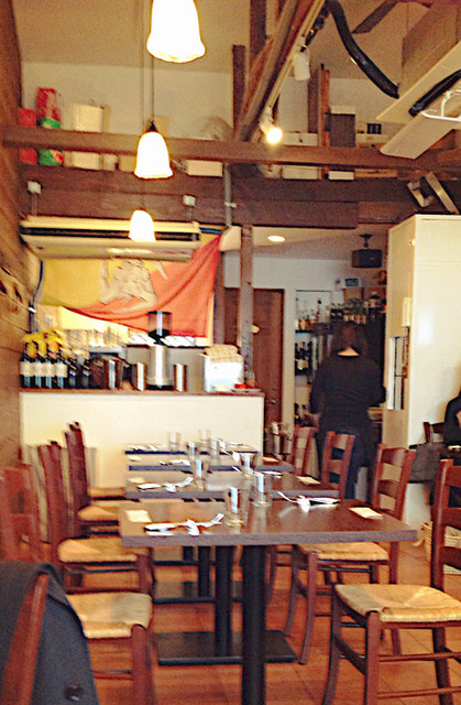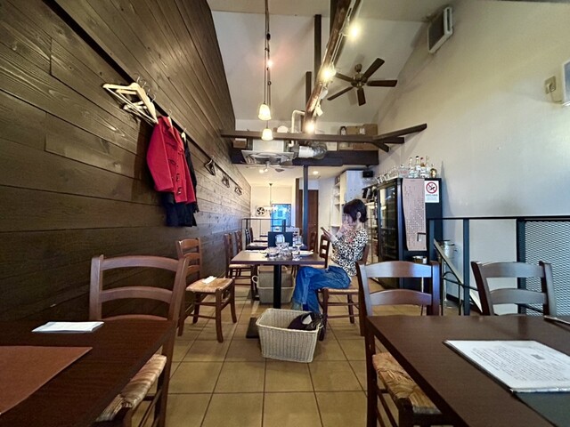 1階はカウンターとテーブル席があり、ワインを楽しむ人向け✨お酒の注文必須。ピザやパスタなど、その時のお腹の具合に合わせて量を調整してくれます