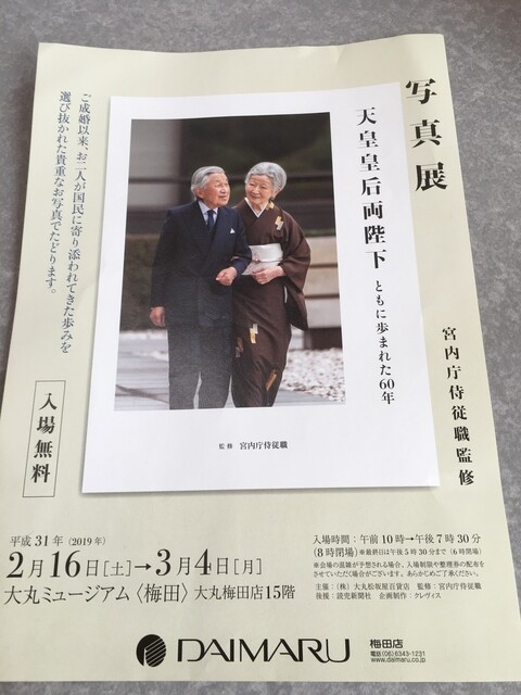 「写真展 天皇皇后両陛下 ともに歩まれた60年」を見に行きました。