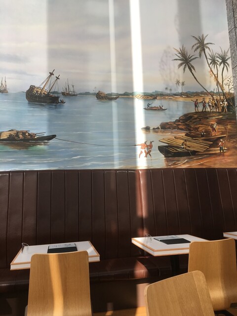 ガラス張りのこちらのカフェは、天井がとても高くて