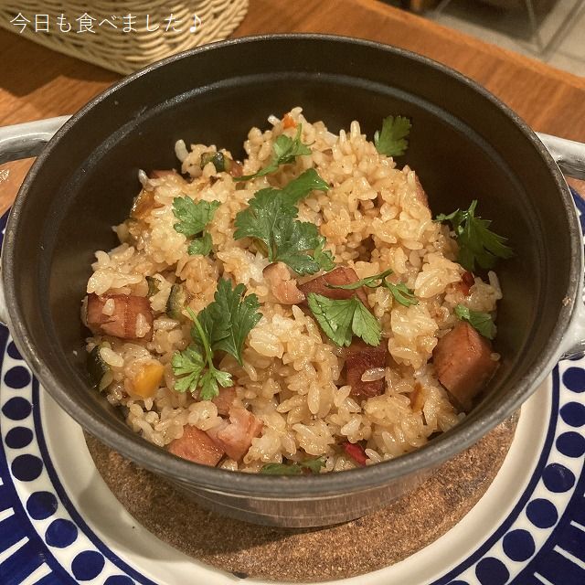 なんとフランスで有名な食器『STAUB』の鍋で炊いた『SPAMの炊き込みごはん』です。