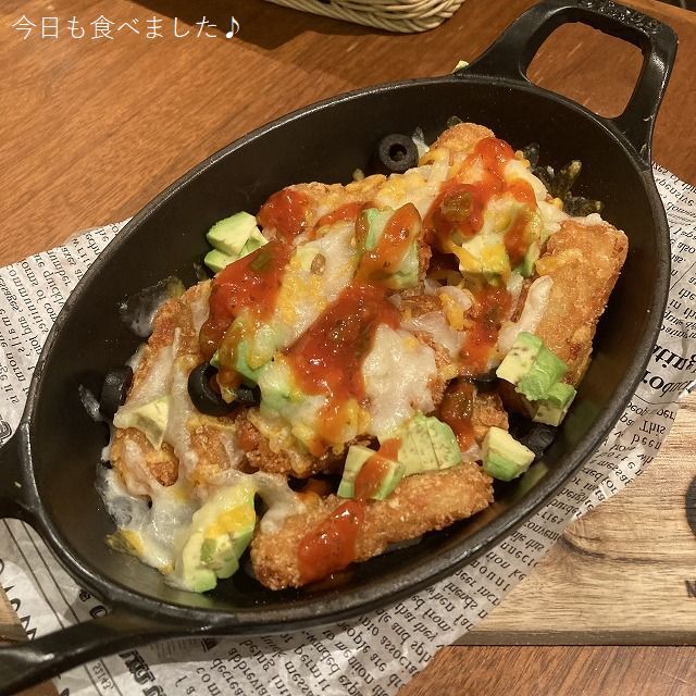 そしてアツアツの鉄板プレートできたのは、ハッシュドポテトみたいなものに贅沢にたくさんのチーズとアボガドがトッピングされてるハワイアン料理です。