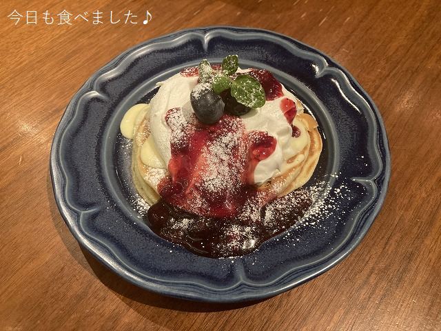 温かいパンケーキとクリーム、そしてフルーツソースが美味しすぎます。