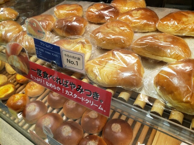 見つけられなくて総菜系の売り場へ向かうと入り口で、出来立てのクリームパンを販売していまし...