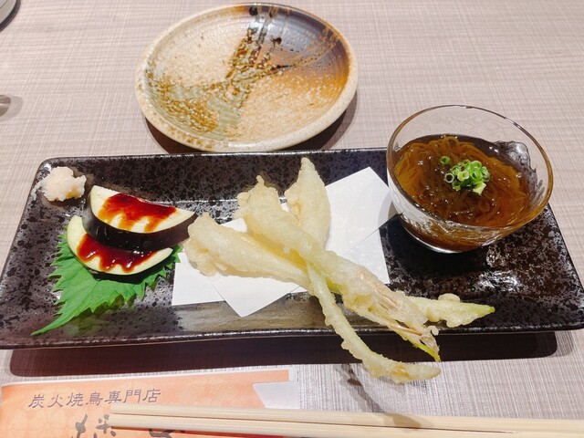 ■本日の前菜 ■つくね焼串 ■笹身とアボカドのわさび和え ■おまかせ焼串 ■おまかせ焼串 ■チキン南蛮 ■自家製和風ピクルス ■名古屋コーチン炙り炭火焼き ■季節野菜の炭火焼き ■本日の〆 ■鶏スープ