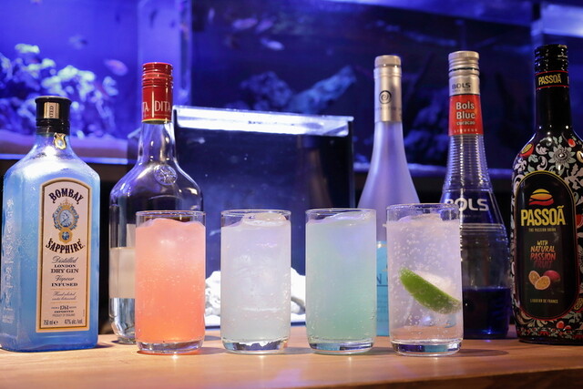 深海をイメージした水槽とお酒が楽しめるコンセプトバーです。