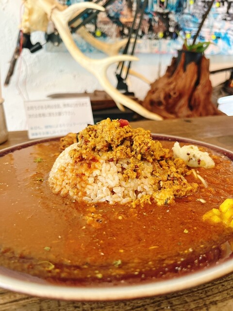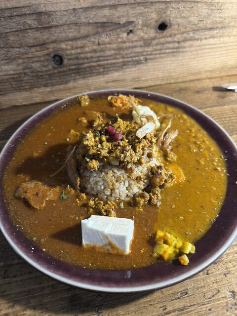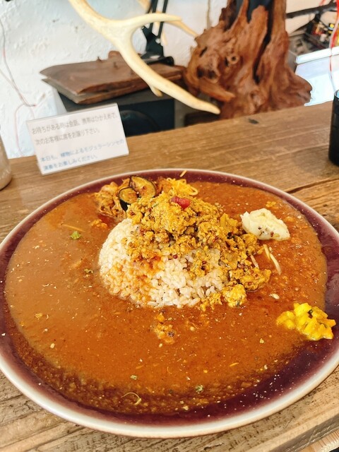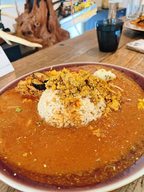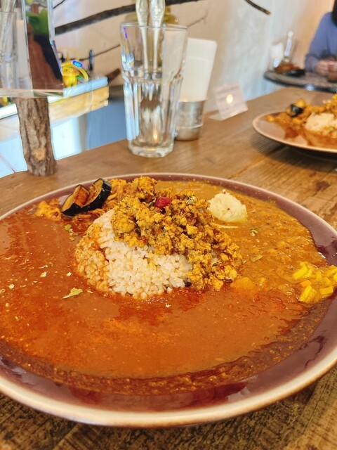 中津駅近くにあるカレー屋。 食べログの評価が高いですが、休日のお昼ごろで待ち無しです。 植物が多く飾られており、古民家風な店内です。 最初に注文とお会計をします。 チキンキーマが基本でそこに、お肉のカレー、野菜カレー、トマトカレーから2種選べます。 お肉のカレーはそこにチキン、豚バラ、... 詳細を見る