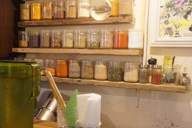 店内は木が生い茂っていて異国情緒あふれるお洒落な雰囲気です!沢山のスパイスが並んでいてもうすでに美味しそうです!笑