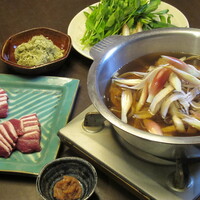 創業より続く、定番のお鍋のコースです。河内鴨ロースを厳選素材で取るお出汁でお召し上がりください。お野菜は北海道のごぼう、大阪の難波葱、仙台(もしくは高知)のせりをたっぷりと。 前菜は河内鴨と季節のお野菜の酒のあてを。たたきは朝締めの新鮮な河内鴨を。新鮮な素材の味をご堪能ください。お鍋は柔らかいロースをサッとお出汁にくぐらせてお野菜と一緒に。〆のお蕎麦は手打ちの二八蕎麦をせいろでお召し上がりいただきます。