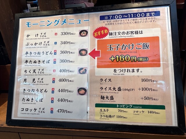 今日は時間が無かったのて、改札内にあるうどん屋でサクッと終わらせようとうどん屋をチョイス。
