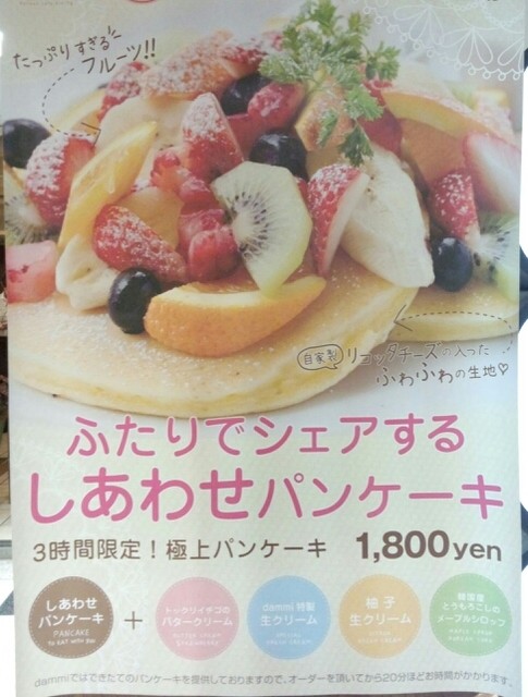 パンケーキの広告がお店の前に大きく貼ってあります。