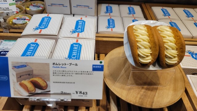 エシレ阪急うめだ店限定のオムレットブールをいただきました。クリームは安定のバターを感じる濃厚なもので、スポンジ生地はふわふわで少し甘めで、とっても美味しかったです。日曜日の14:00頃に来訪しましたが...