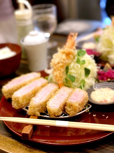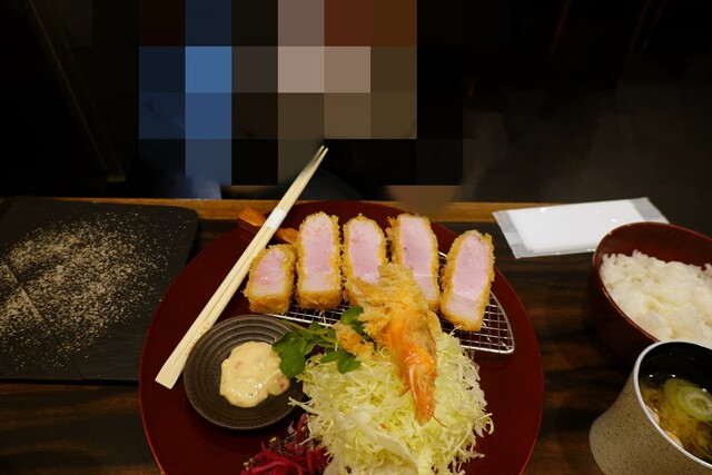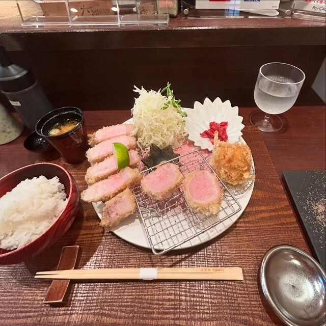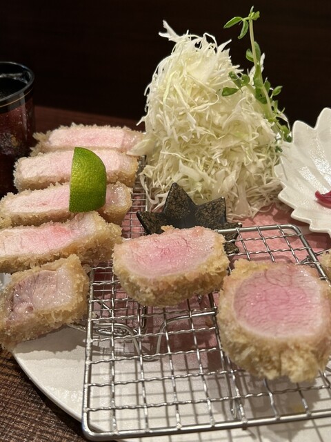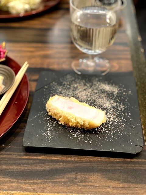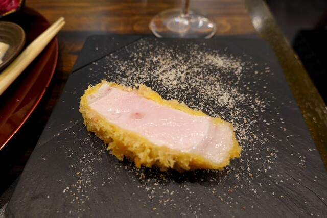 13時ごろ訪問。待ちなし。夜のお店がひしめくビル3Fでひっそりお昼も営業されています。 たわらポークの200gを選択。料理出てくると思った以上の厚さ大きさあり300gくらいあるのでは?と思った。低温でじっくり火を通している様子で、衣は白め、お肉の真ん中はほんのりピンク色。トリュフ塩で美味しくいただ... 詳細を見る