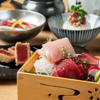 不定休日あり / 世界初の完全養殖に成功した近大マグロや近大マダイなどの養殖魚の逸品やコースをご提供する養殖魚料理店。半個室席完備。飲み会や接待、ランチにもおすすめ。
