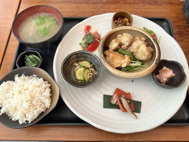 平日何度もランチに足を運んだものの、限られた時間ではピーク帯で入れなかったので、会社の休日狙ってようやくありつけました。 待った甲斐がありました! 前菜の時点で、既に品数一杯。 おかわりもして近江野菜をこれでもかと堪能。ドレッシングは非常に美味しくて、後でお土産に買いました。(最近、減塩している私にはちょっと塩味が強く感じましたが…) 野菜の天ぷらもお野菜プリプリ、豆乳鍋の時点... 詳細を見る