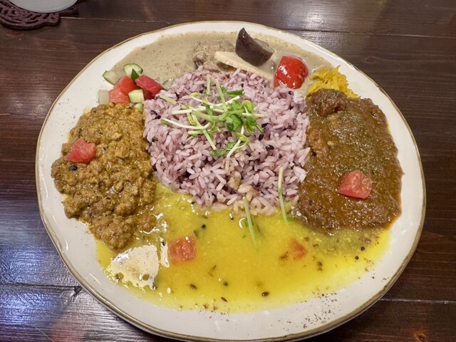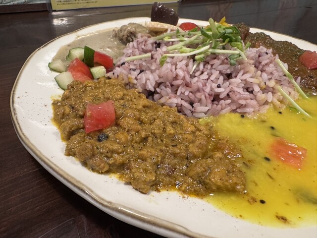 なんと4種類のカレーをワンプレートで楽しめる贅沢なセットです。