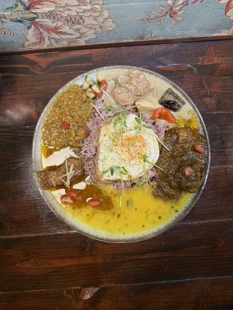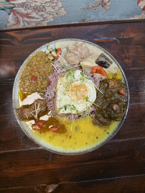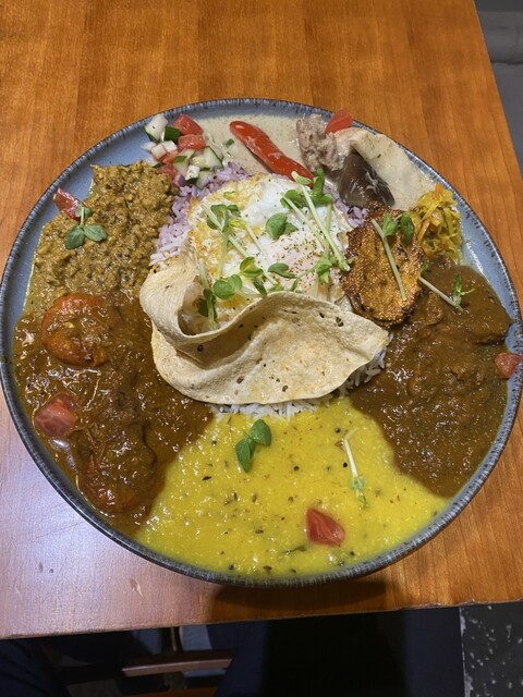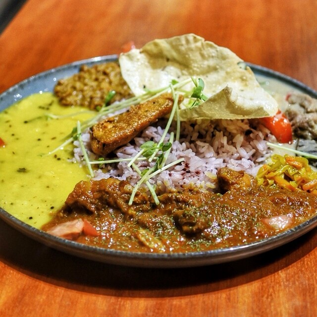 昼はスパイスカレー系/夜は東インド現地系と、時間帯で全く違うタイプのカレーが楽しめる。