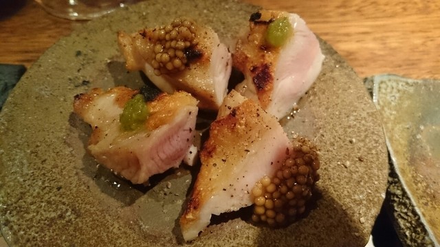 2015/4月 レビュー時 3.43点 レビュー数 5件 ども!こちらはコース仕立ての創作鷄料理店です!o(^o^)o カウンター6席のこちらお店は30歳の店主が お一人で営業されていました! ☆ お任せコース ¥6000円 前菜から始まり約2時間のコース 前菜 : サクラ豆腐 ☆ 鶏のお刺身のサラダ仕立て 鶏のお刺身を少量ユッケ風にサラダと共にい... 続きを読む»