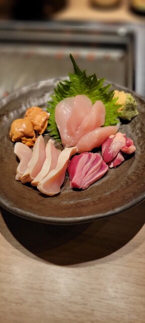 先輩に連れてってもらったです。 北新地ー(о´∀`о) オトナw 写真は刺身しか撮らなかったですが、 焼きも色々頂きました。 普段食べるような鶏とは一線を画している。 ウンマい。 肉を噛んだ瞬間、独自の鶏肉の風味が鼻を抜けるのです。 それでいて、 新地にもかかわらず、 そしてこの美味しさなのに、 お値段良心的! 庶民の私でも再... 詳細を見る
