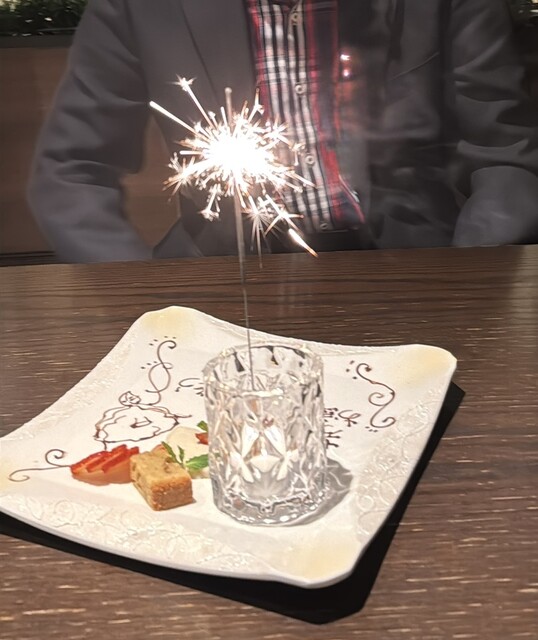 この日はブルガリア産鴨のローストを堪能するコース。予約時に伝えておけばデザートをメッセージ付きのデコレーションプレートに変更してくれる。