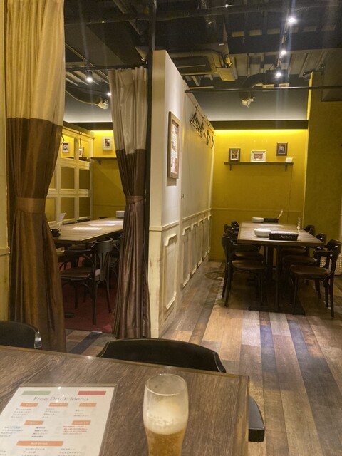2016年12月土日の17時半頃に友人と4名で訪問。 夕方梅田で友人と合流。阪急東通でどこのお店に行こうかとぶらぶらしていた際、 たまたま目に入った通り沿いの単品飲み放題が決め手でこちらのお店に入りました。 通されたのは4階。 ソファーやカーテンで仕切られた個室がいっぱいで、 雰囲気の良い空間でした。 喫煙OKっぽいが人によっては気になるのかも。 とりあえず単品飲み放題を... 詳細を見る