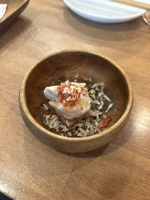 2025/6 金曜夜18時訪問(満席でしたので予約推奨!) 大阪・梅田の喧騒から一歩入った曽根崎に佇む「カッシーワ お初天神店」。 今回は、看板の《逸品コース(5,500円)》をいただきました。ひと皿ごとに工夫が凝らされ、味覚と視覚の両面から楽しめる、まさに“逸品”揃いの内容でした。 ... 詳細を見る