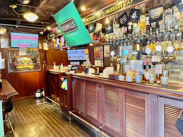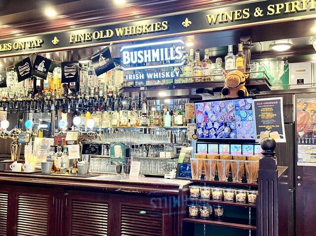 英国調の店内には大型モニターが複数設置されており、どの席からでも快適に観戦できます。