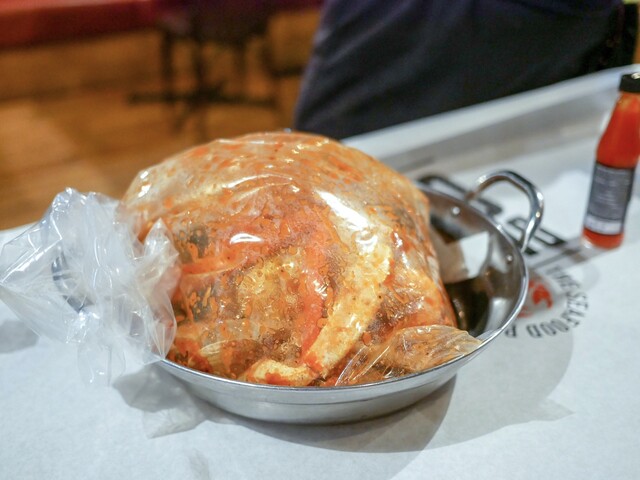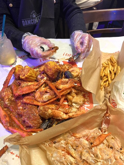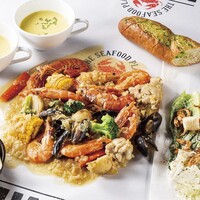 スパイシーな味付けのソースを絡めたシーフード「コンボバッグ」をテーブルの上に広げ、ナイフやフォークを使わず、手づかみでワイワイ楽しく食べるという豪快なスタイルが大好評!アメリカンシーフードレストランです。