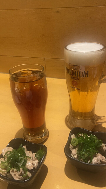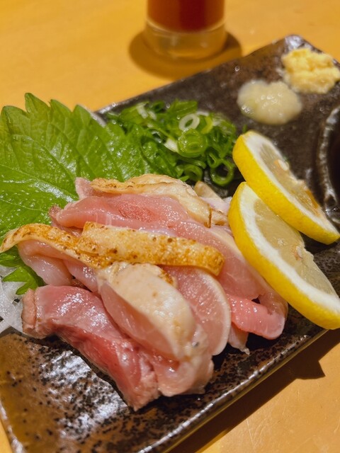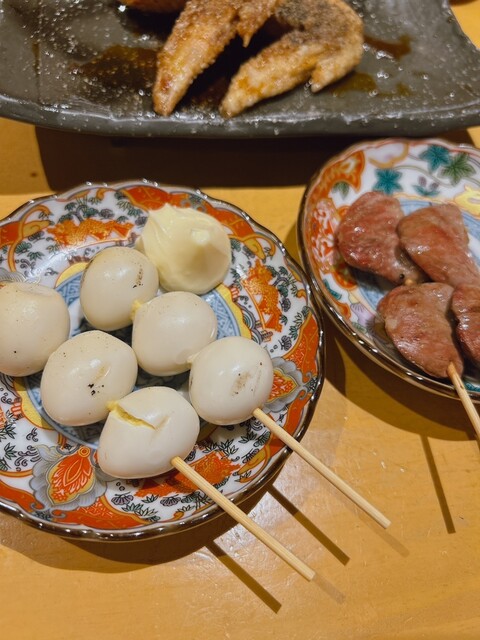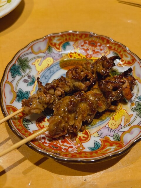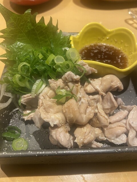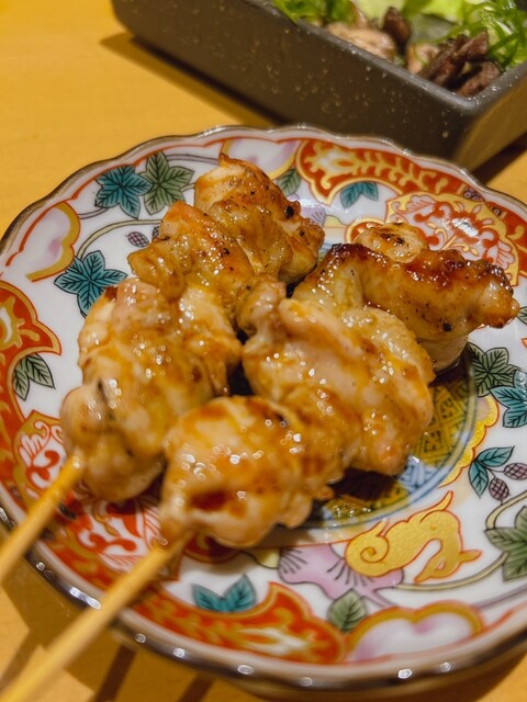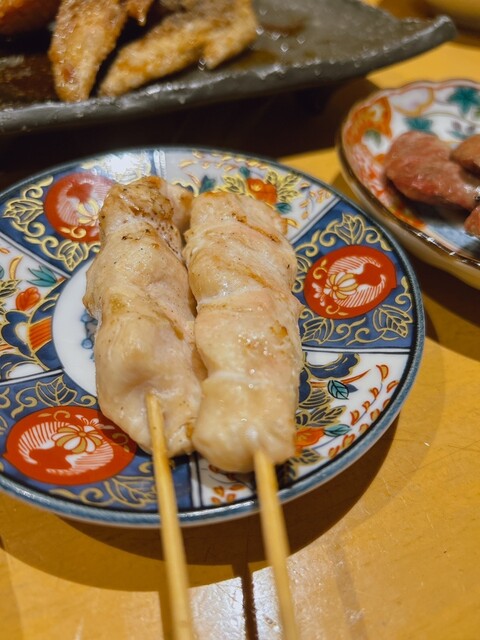 まずプレミアムモルツの生ビール(550円)をお願いして、お通しの葱いっぱいの鶏ハラミの冷しゃぶをアテに飲み始めました! そのお通しがまた美味しかったです! 次に今月のおすすめの朝引き鶏の醤油こうじ和え(780円)は生ものなのですが醤油とこうじで絶妙な味を楽しめました! 串からは山芋焼きのチーズ乗... 詳細を見る