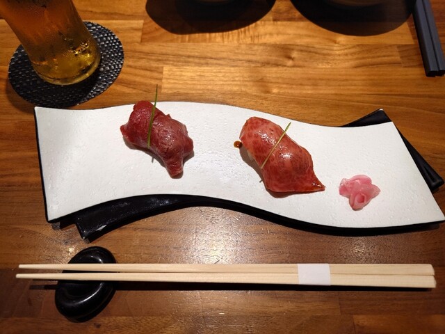 和牛握り寿司二貫(赤身、中トロ)