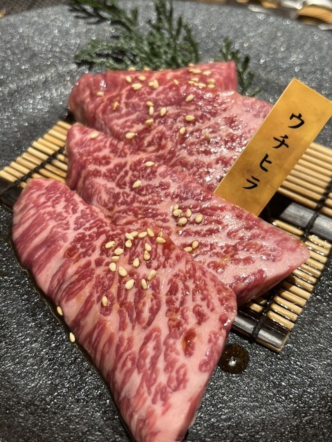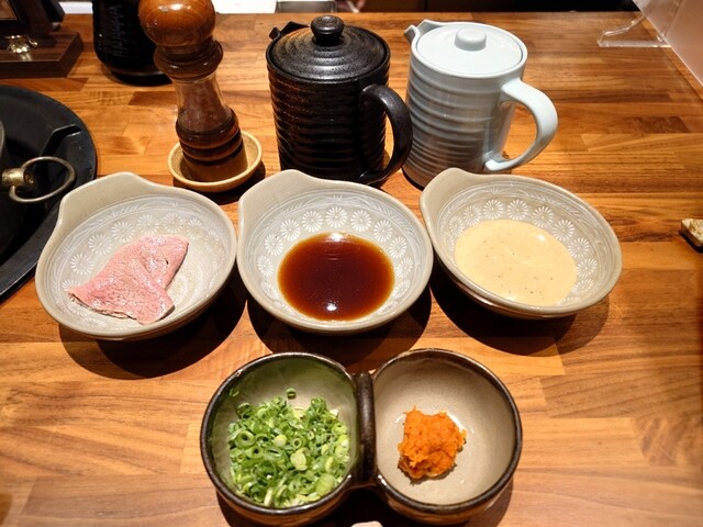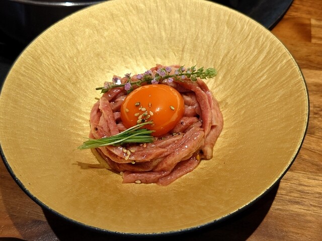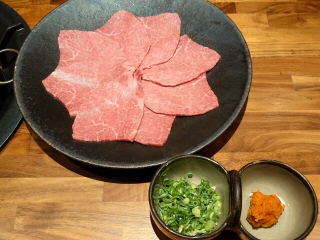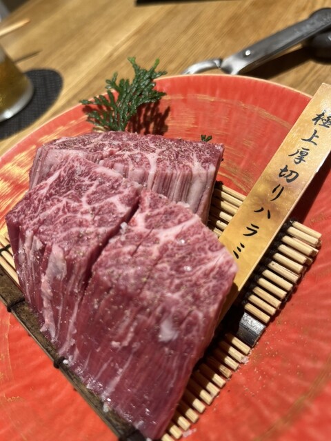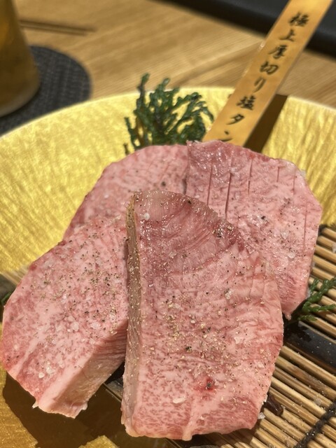 焼肉をいただきました。 2人で利用。カウンターは、奥行きがあり、ゆったりと広かったです。 好きなお肉を注文したかったので、単品にしました。まず、極上炙り刺し。とろけるような美味しさでした。 上塩タン、極上ヘレ、マルシン、極上ハラミをいただきました。今まで食べた中で1番と言っても過言ではない美味しさでした。 締めは、盛岡冷麺。トッピングも盛り付けもいい感じで美味しかったです。 ... 詳細を見る