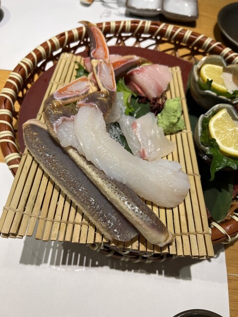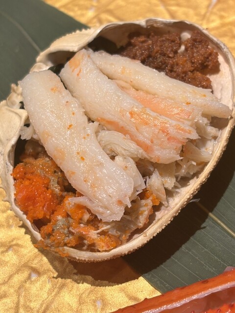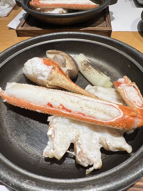 「冬の主役、香住が誇る“王者の蟹”。」 兵庫・香住港から直送された活松葉蟹を、最高の鮮度でそのまま調理。 北由商店の職人が見極めた“身入り・甘み・香り”が際立つ一杯を、刺身・焼き・鍋・雑炊と贅沢に堪能できる人気No.1コース。 松葉蟹ならではの繊細な甘みと上品な旨み、口の中でとろける食感はまさに冬のご馳走。 焼けば香ばしく、茹でれば瑞々しく、鍋にすれば蟹出汁が身体に染み渡る。 梅田の中心で、香住の港そのままの味を体験できるのは北よしだけ。 ※松葉ガニ半身でご提供いたします。