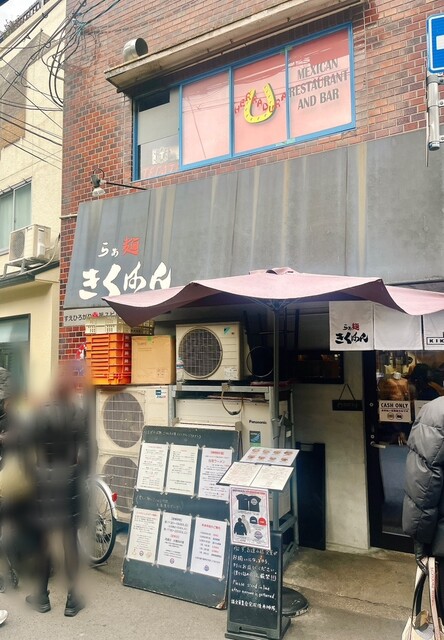 年始に初詣がてら『外で食べよう』と試みるけど、予想通りお店はあまり開いてない中、こちららぁ麺『きくはん』さんは営業してる〜しかも年始から列んではる〜って事で、あまり食べないラーメンを頂く事に。