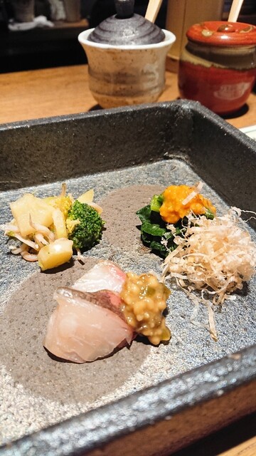 古代から伝わる『ひしお』や『こうじ』など日本人にはなじみ深い伝統発酵調味料をメインに、旬の食材と日本各地の美味しい日本酒をご用意しております。『わさび醤』『からし醤』『葱味噌』『山椒味噌』『かんずり』『三升漬け』『赤酢』などその他にも多数の調味料を使用することにより、より味わい豊かに食材を楽しんで頂けます。当日2名様からご利用いただけるコースもご用意しております。皆様のご来店をお待ちしております。