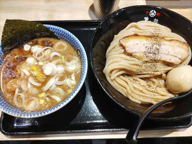 オーダーはデフォのつけ麺並盛。流石に大盛りは量が多く、かといって小盛りだと少なそうなので