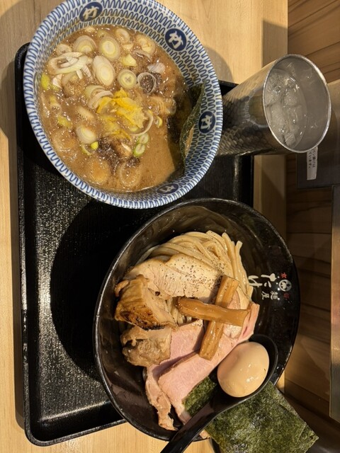 底が熱々の器で運ばれてくるつけ麺のスープは魚粉が強...