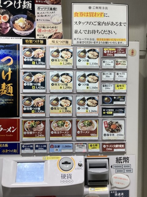 12:21到着、外待ち5人待ち満席、食券買ってスタッフに渡し