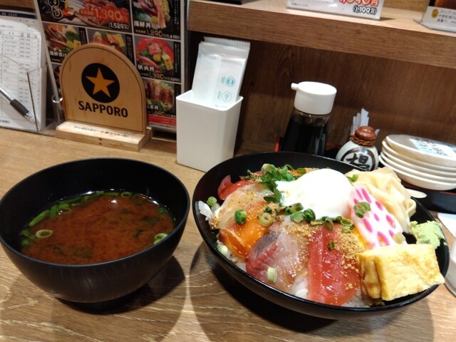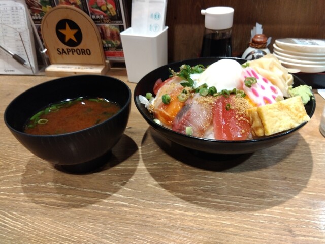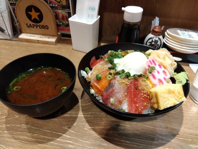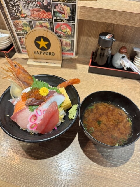 お昼を飛ばした仕事帰りに、おなかが空いて飛び込みました。海宝ちらし、すっごく美味しかったです。お魚も分厚くて、食べやすくて。赤だしがついているのですが、寒い日だったから、嬉しかったです。漁師飯も美味し...
