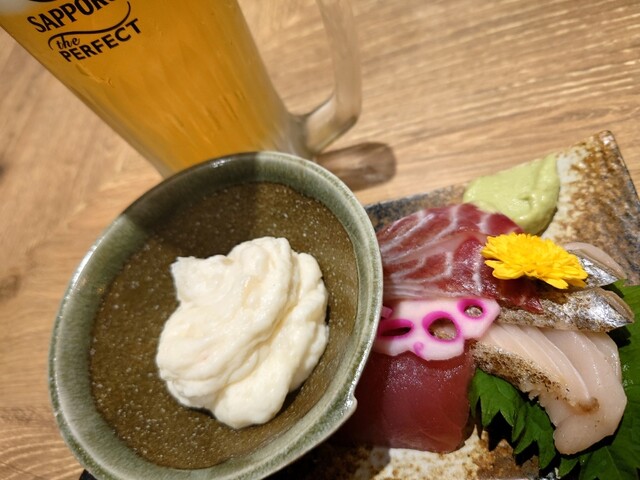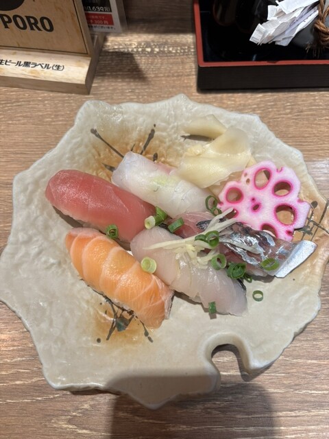 お寿司も美味しいですが、あまりお腹を膨らませたくないときはほろ酔いセット。ビール一杯飲みたいだけの時はこれくらいが...