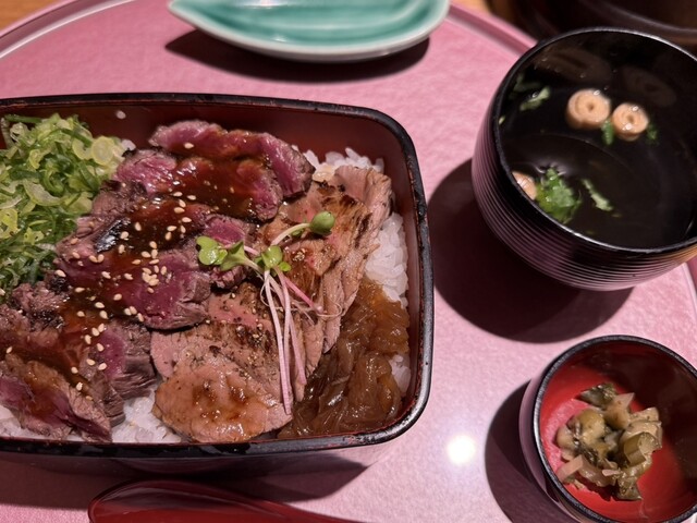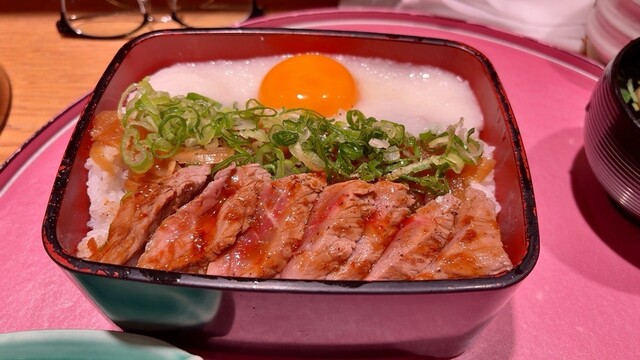 大阪で肉卸を営む老舗問屋がプロの目で見極め選び抜いた牛肉を、しっかり旨味を閉じ込めながら焼き上げ、秘伝のタレが絡むふっくらご飯に盛り付ける…それが当店自慢のビフテキ重です。