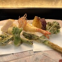 季節のお野菜、魚介を使い、なにわの食材お使った天ぷらです。